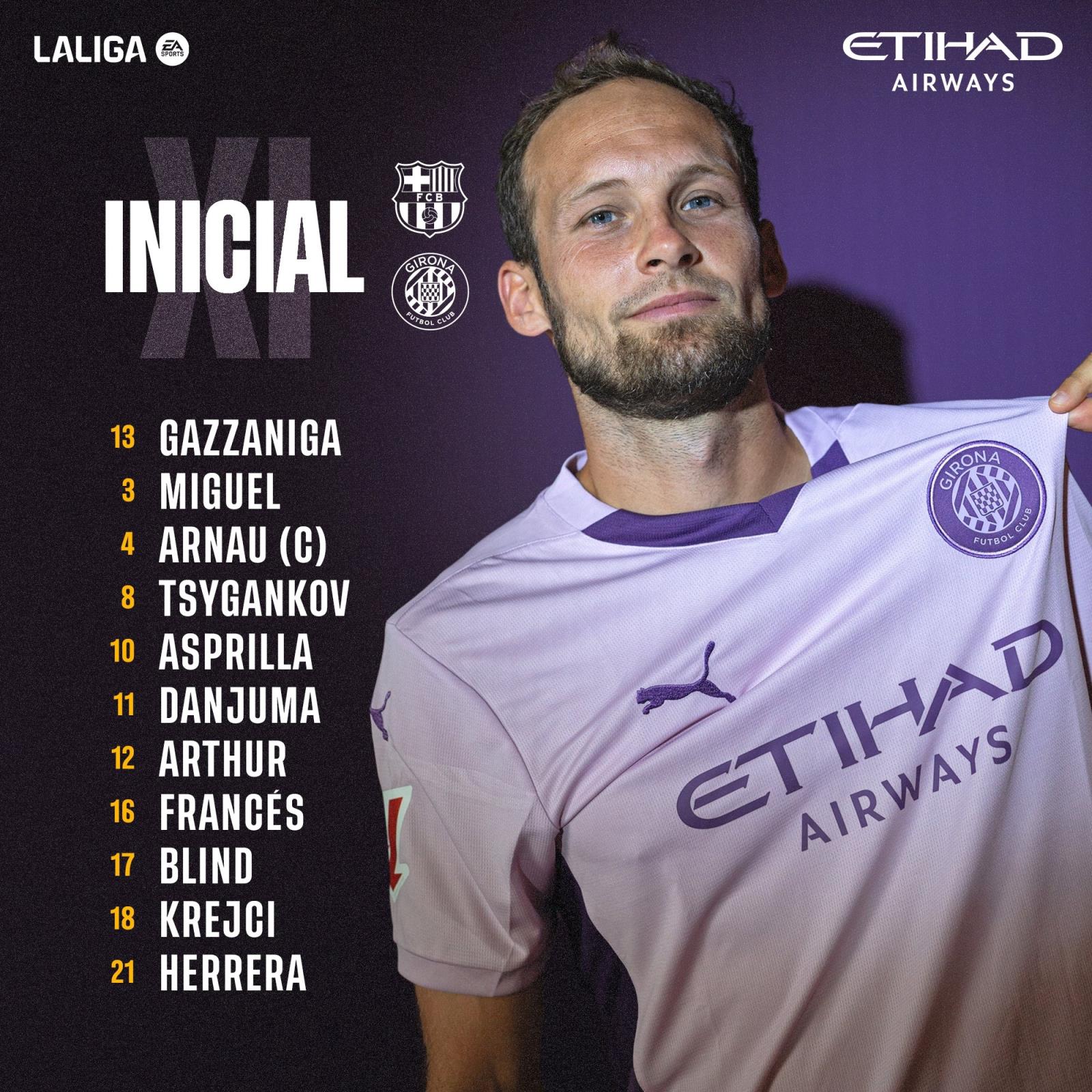 赫羅納首發:13-加扎尼加、3-米格爾-古鐵雷斯、4-阿爾瑙-馬丁內斯、16-亞歷杭德羅-弗朗西斯、17-布林德、18-克雷吉奇、21-揚格爾-埃雷拉、12-阿圖爾、8-齊甘科夫、10-阿斯普里拉、11-丹朱馬